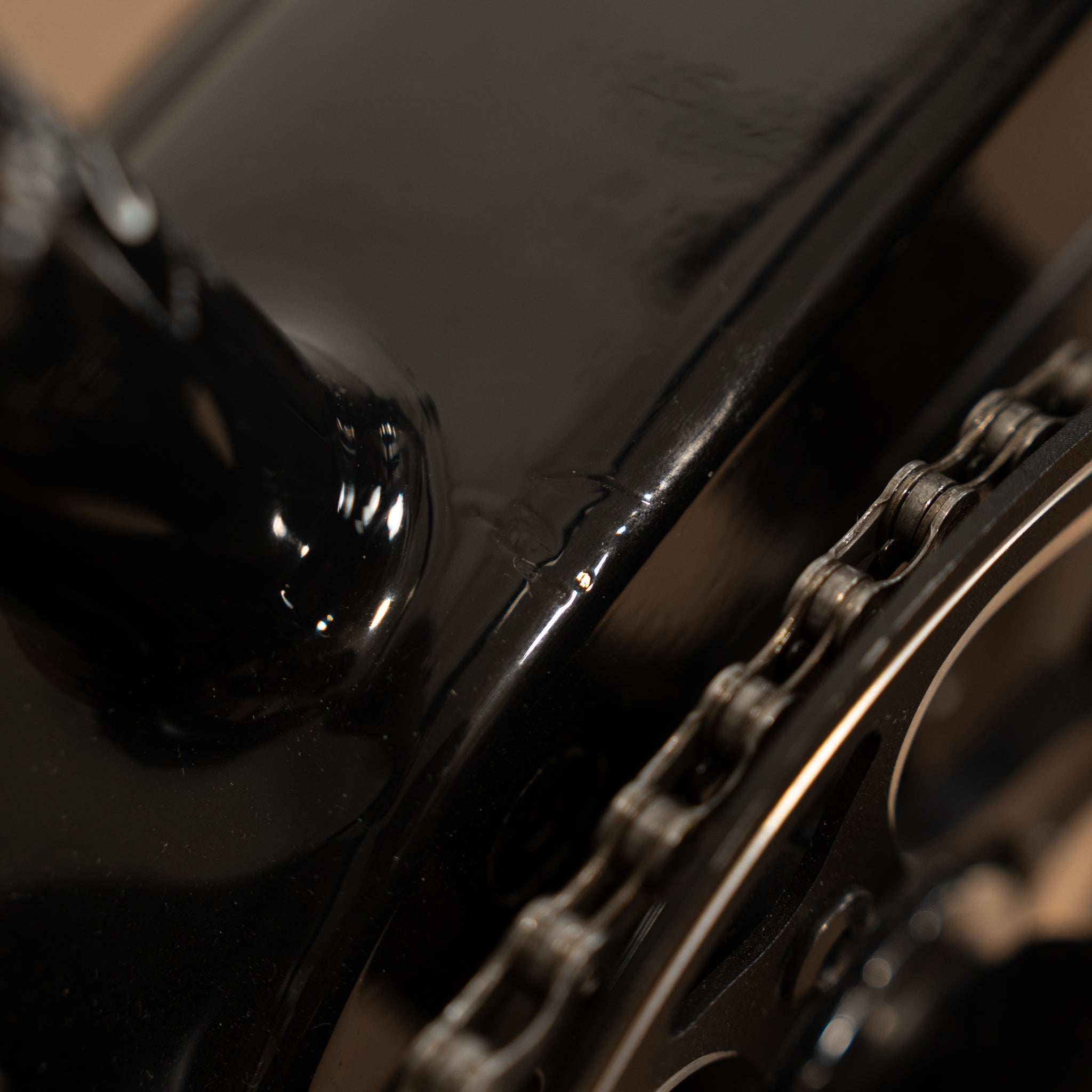 A good as new Classic Electric in Black, showing a few minor cosmetic imperfections from storage and handling. There’s a small chip to the rear of the seat tube, a light scratch near the lock, and some touch-ups around the bottom bracket area. The bike is unused (0 miles), fully checked and serviced, and supplied with our standard Temple e-bike warranty (2yrs).